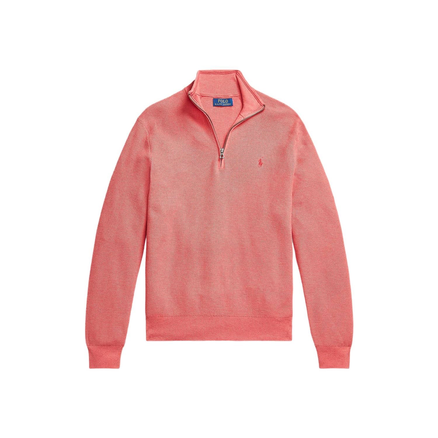 Polo Ralph Lauren Mesh-Knit Cotton Quarter-Zip Sweater Genser Pastellrød